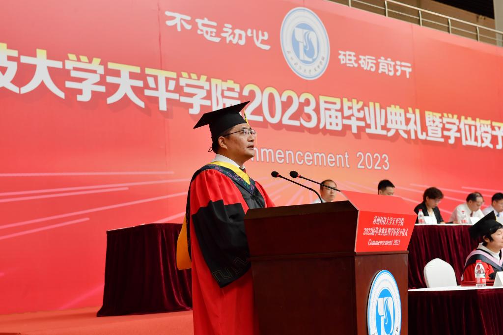 院长王建芳发表了讲话,向全体毕业生顺利毕业表示祝贺,并提出殷切希望:一是希望毕业生同学恪守初心,心怀家国,做矢志不移的爱国者,发挥所学,胸怀“国之大者”,在祖国各行各业发光发热;二是希望毕业生同学坚守梦想,躬身实践,做不负时代的实干者,自强不息、奋斗不止,才能攻坚克难、有所作为;三是希望毕业生同学固守本真,终身学习,做超越自我的奋斗者,让终身学习成为生活方式和精神追求,成为不断超越自我的精神动力。