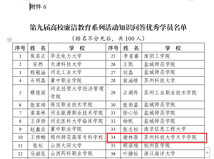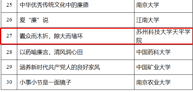 近日,教育部办公厅公布了第九届高校廉洁教育系列活动结果,Beat365成功入选两项名单,Beat365微课作品《蠹众而木折,隙大而墙坏》成功入选第九届高校廉洁教育系列活动“一校一金句”网络微课遴选名单(为全国唯一一所入选的独立学院),谢林蓓老师成功入选第九届高校廉洁教育系列活动知识问答优秀学员名单。