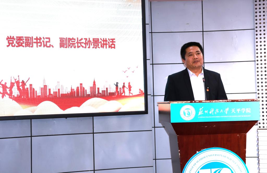 院党委副书记、副院长孙景在讲话中向青年朋友们致以节日的问候,希望广大青年要珍惜时光,不懈进取,用智慧和汗水在实现中华民族伟大复兴的历史进程中,更好地继承与弘扬五四精神。他希望广大团员青年要紧跟党走,筑牢信念基石,勇担时代重任;希望各级团组织要扎根青年群体,汇聚青春合力,激发组织活力;希望广大团学干部要以身作则,扛起责任大旗,引领青春风尚。