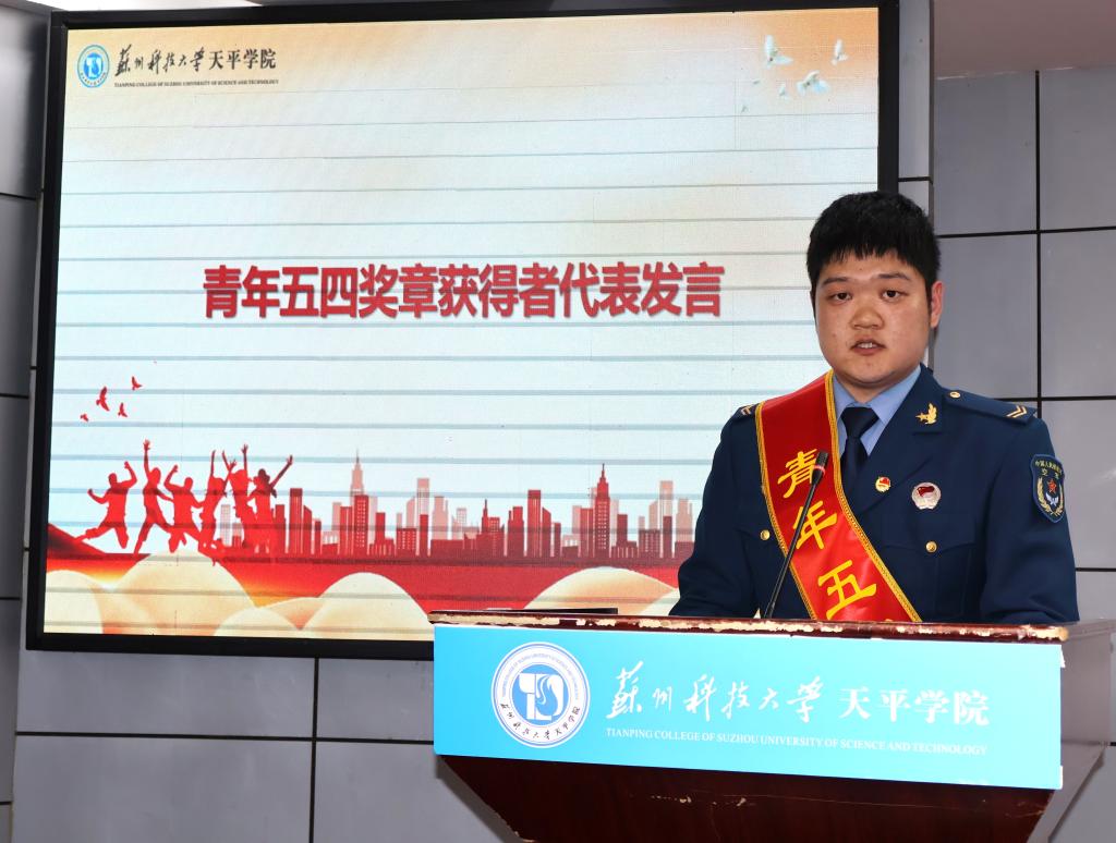 大会中,先进集体和优秀个人代表发言。“青年五四奖章”获得者韩晋嘉以“青春在奉献中闪光”为主题,结合自身军旅经历和无偿献血的感人事迹,向在场青年发出铿锵有力的号召。作为“五四红旗团支部”获奖集体代表,王祯从思想建设与学习提升、团队凝聚力建设、先锋模范作用发挥等方面展示了团支部的不懈努力。