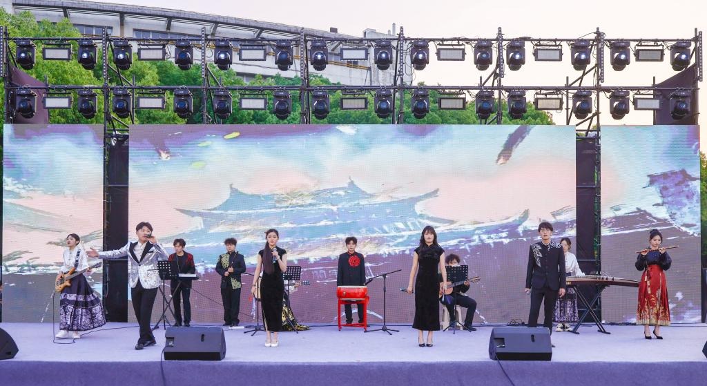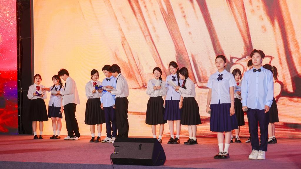 晚会在灯光秀《时空之门》中拉开序幕。乐队演奏《天下》以器乐为笔,音符为墨,用激昂旋律唤醒青年胸怀寰宇。少数民族同学们带来的歌舞表演《大地飞歌》,将个人理想升华为民族腾飞的集体咏叹。古装秀《华裳绮梦》让文物在衣香鬓影间苏醒,将古典华美与现代时尚巧妙融合,展现了中华文化的独特魅力。由朗诵、歌曲融合而成的原创校园情景剧《与青春作别 赴明日之约》引发毕业生们回忆过往的校园生活,刻画了四年校园生活中的点点滴滴。快板《廉洁颂》创新廉政教育形式,为毕业生系好人生第一粒纽扣。