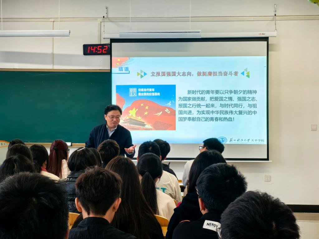 近日,学院领导班子成员纷纷走进课堂,聚焦“立报国强国大志向,做挺膺担当奋斗者”主题,给学院2025级新生团学干部和学生骨干讲授了一堂堂生动的思政课。