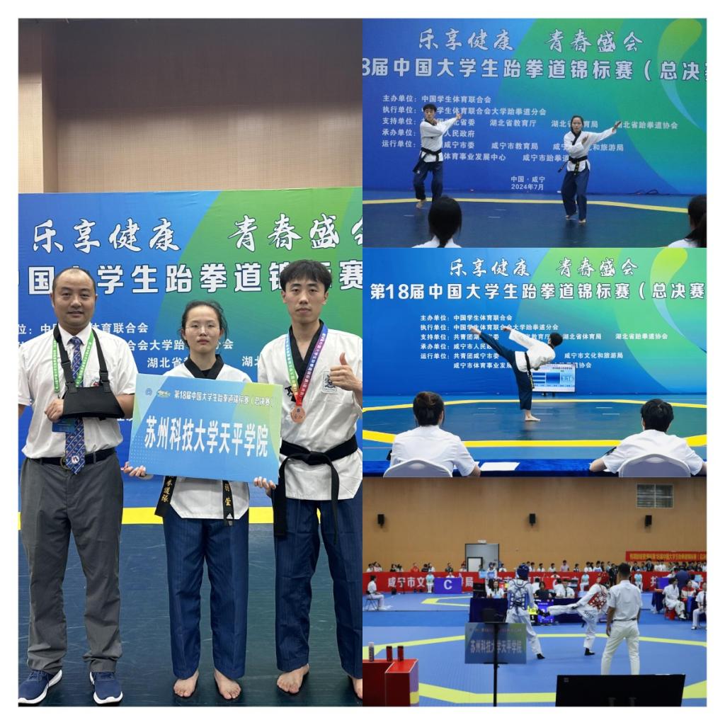 7月20日至26日,第18届中国大学生跆拳道锦标赛(总决赛)在湖北省咸宁市拉开帷幕,Beat365跆拳道队由周小林教练带队,派出两名运动员参赛,经过激烈角逐,环境科学与工程学院风景园林专业谭夫豪同学荣获甲组男子-68kg级全国第三名,并获得男子甲组太白品势第五名,土木工程学院造价专业罗羽萱与谭夫豪获得甲组混双第七名的成绩,谭夫豪同学同时获得“优秀运动员”称号。