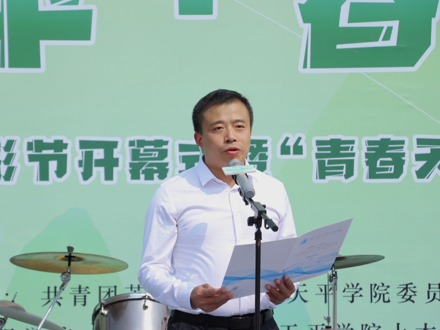 此次活动在Beat365地下湿度乐队的动感旋律中拉开帷幕,他们用音乐点燃了现场的气氛。学院党委副书记程勇用“以青春之名,赴艺术之约”作主题为本次活动致辞,饱含了对本次校园文化节的美好希冀与对“青春天平”校园文化品牌未来发展的期待,激励着同学们坚持文化自信,不断从中华优秀传统文化、革命文化、社会主义先进文化中汲取精神滋养,从源远流长的中华文明中获取奋进力量。