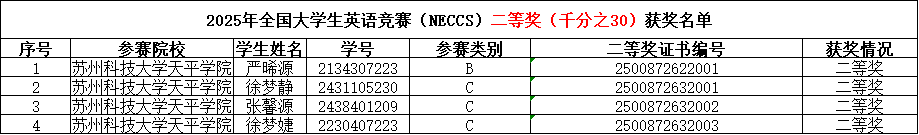 本次校内初选赛共有137名同学分别参加B、C、D三个类别的竞赛,最终王妍骁(造价2321)等12名同学分别获得一、二、三等奖,王妍骁同学进入2025年全国大学生英语竞赛(江苏)赛区的决赛。