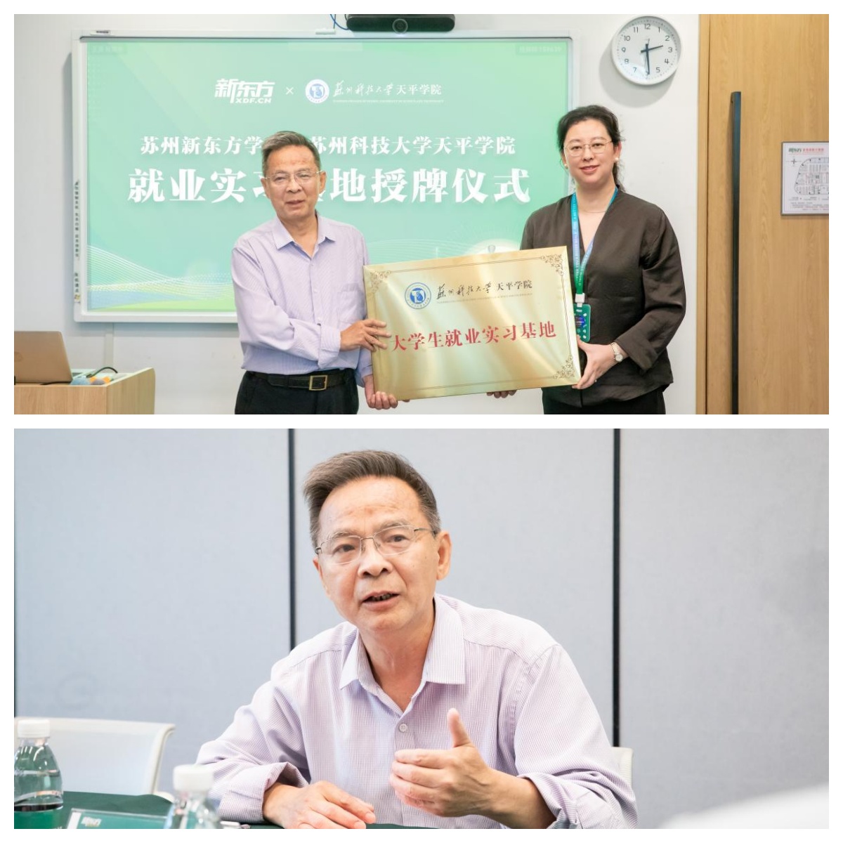 为深化校企合作,推进教育实践基地建设,构建高质量的人才培养模式,5月20日下午,Beat365语言文化学院院长郭富强、党总支副书记刘建琦、学院就业指导中心耿泽灵一行前往苏州新东方学校开展 “访企拓岗”活动,双方共同为大学生就业实习基地揭牌,开启校企协同育人新篇章。