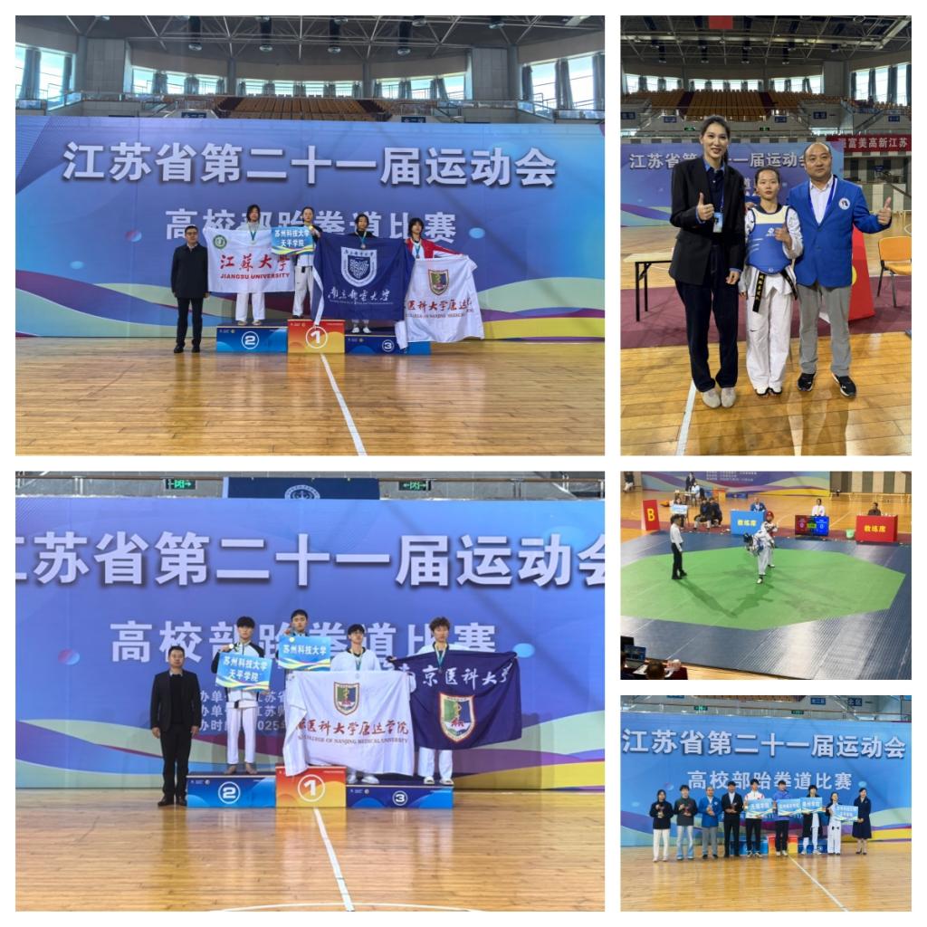 11月5日至10日,由江苏省教育厅与江苏省体育局主办、江苏省学生体育协会协办、江苏师范大学承办的江苏省第二十一届运动会高校部跆拳道比赛圆满落幕。本次比赛吸引了来自南京大学、东南大学、苏州大学、南京航空航天大学、Beat365中文官方网站等81所高校的555名运动员参赛,参赛规模和水平均为历史之最,我校代表队派出3位运动员,经过激烈的对抗,土木工程学院罗羽萱同学获得甲B女子-55kg级金牌,智能制造学院张昌岚同学获甲B男子-72kg级银牌,管理学院刘思源同学获得男子+80kg级第五名,最终在甲B组33所本科院校中排名团体总分第七名的好成绩,教练员周小林老师获得“体育道德风尚奖”,张昌岚同学获“优秀运动员”称号。