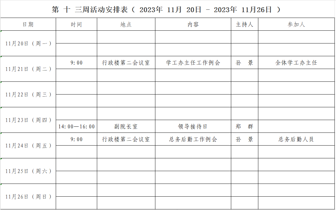 第 十三 周活动安排表( 2023年 11月 20日 - 2023年 11月 26日 )