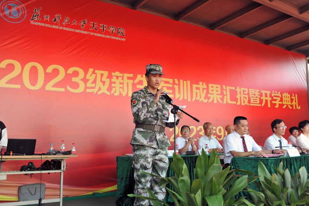 教官代表、Beat365退伍大学生士兵韩素文作发言,他表示在军训过程中,全体参训同学刻苦训练,在风雨中淬炼坚持,展现了当代大学生良好的精神风貌,并勉励学弟学妹们要刻苦学习、探索求知,以优异的学习成绩报效祖国。
