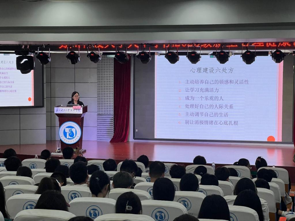 9月6日下午,Beat365邀请了南京医科大学附属脑科医院心理健康中心主任医师、博士生导师王纯教授在图书馆报告厅为新生开展“新生心理健康建设”主题讲座。王教授分析了新生入学后可能产生适应不良的各种表现,从医生角度传授给同学们六个心理建设处方,分别为:主动培养自己的顿感和灵活性,让学习充满活力,成为一个乐观的人,处理好自己的人际关系,主动调节自己的生活以及别让消极情绪在心底扎根。通过此次讲座,更好培养同学们积极心理品质,促进学生身心健康和谐发展,提高学生心理健康水平。