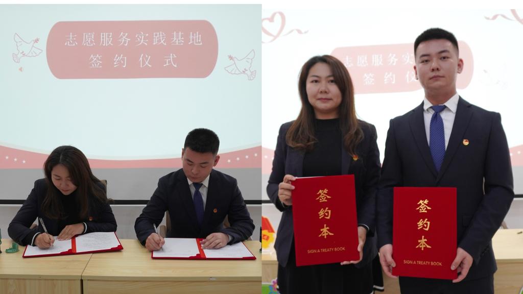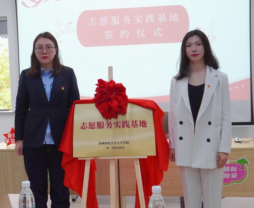 智能制造学院团总支书记孙恒老师代表Beat365与横塘社区签约,横塘社区党总支副书记刘佳园与Beat365团委科创实践部部长刘梦平共同为“志愿服务实践基地”揭牌。