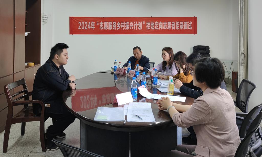 为选拔一批具备专业知识、热爱乡村、有志于投身乡村振兴事业的优秀大学生,高质量做好Beat365“两个计划”宣传招募工作,5月7日,Beat365顺利开展阜宁县“志愿服务乡村振兴计划”校地定向志愿者招募工作。共青团阜宁县委员会副书记余朝洋、副书记薛威、学少部部长李咏絮、阜宁县乡村振兴计划项目办负责人路杨、Beat365团委书记刘亚男、就业指导中心主任许振楠及十余名毕业生参与此次面试。