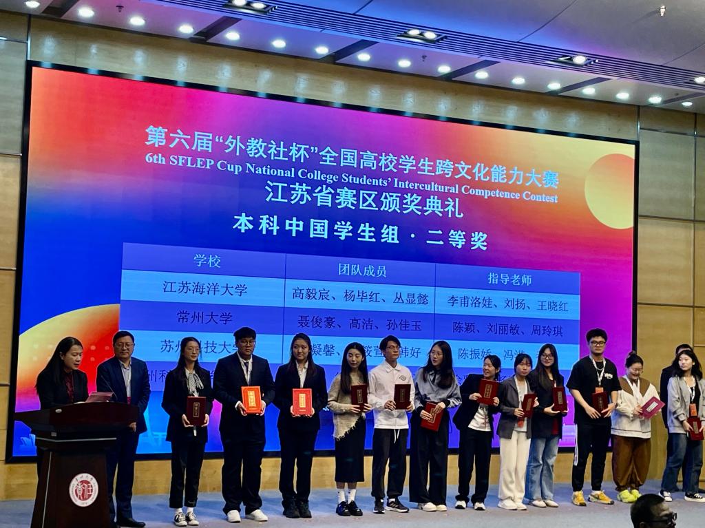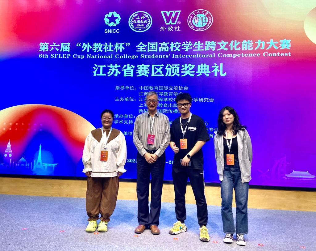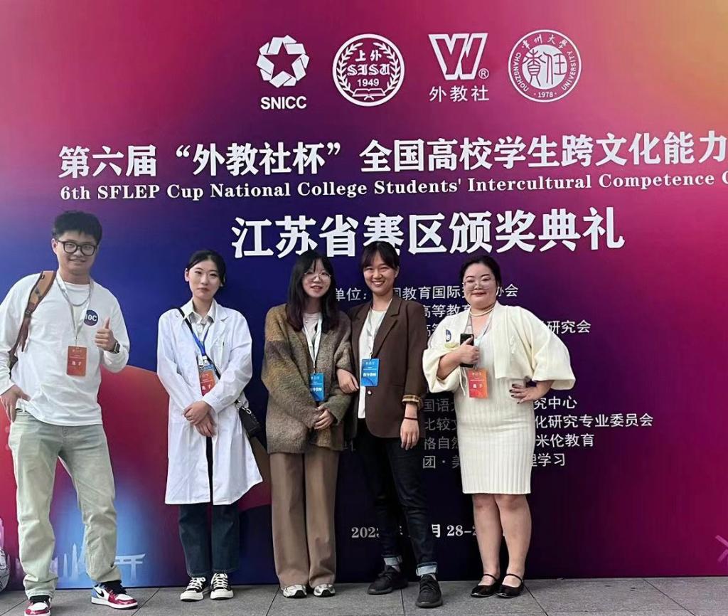 10月28日,Beat365语言文化学院王祯同学和环境科学与工程学院的王宇泽和徐敏璇同学在语言文化学院余雅晴、杨颖、达玙璠三位指导老师的带领下,前往常州大学参加了第六届“外教社杯”全国高校学生跨文化能力大赛,并取得了江苏省二等奖的好成绩。