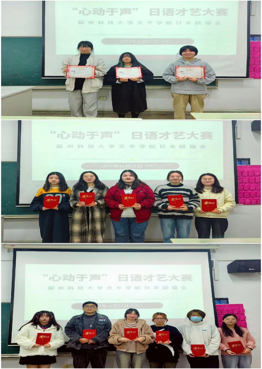 11月21日(星期二)下午3:30,在天平校区2教308举办了以“心动于声 声声回响”为主题的第二届日语才艺大赛。本届大赛设有歌唱、配音两项比赛,共有14位选手献上了11个精彩节目,参赛者覆盖日语、商务英语、翻译专业一至四年级学生,刘凯老师、杨晓嫱老师、刘畅老师、曹颖老师担任大赛评委。本次大赛共决出一等奖3名,二等奖5名,三等奖6名。