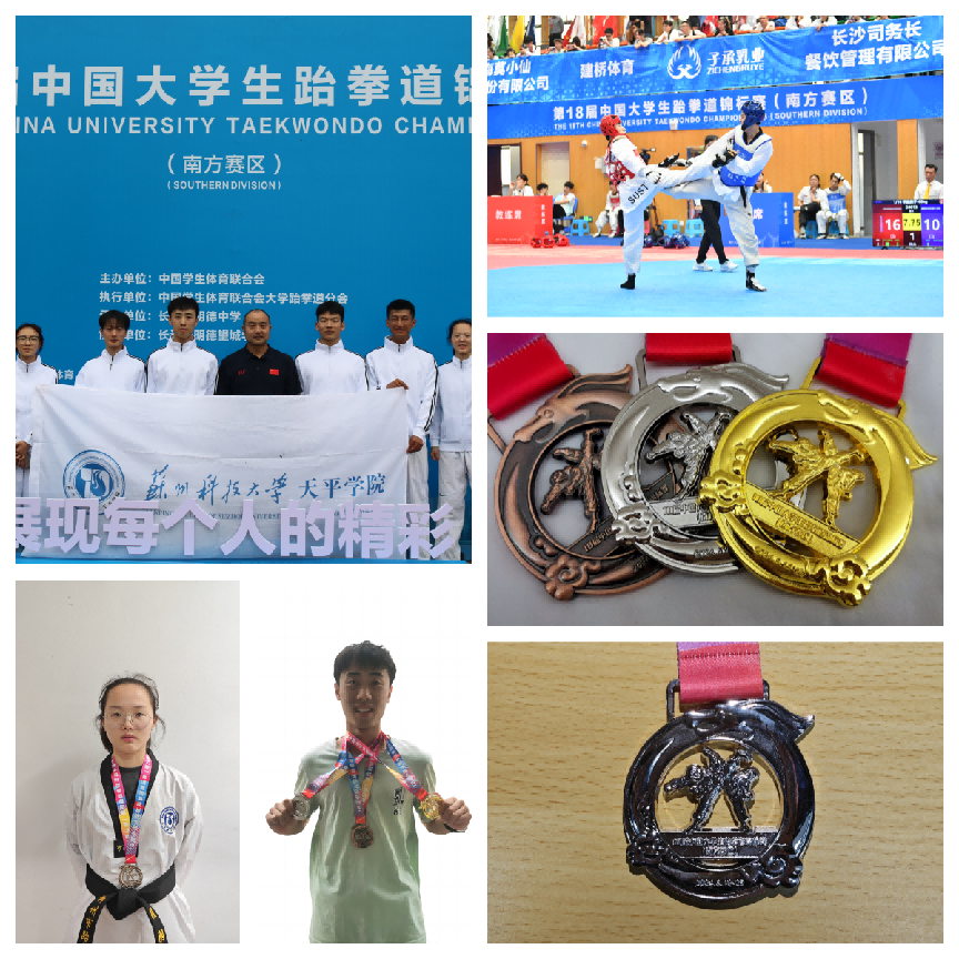 本次比赛Beat365共有六名运动员参赛,通过运动员的奋勇拼搏,环境科学与工程学院谭夫豪同学获得甲组男子太白个人品势金牌以及竞技甲组男子-68kg级铜牌,由谭夫豪、土木工程学院罗羽萱组队的混双太极七章获得银牌,罗羽萱太白个人品势获得第七名的成绩,周小林指导获得“优秀教练员”称号。这也是Beat365健儿首次在跆拳道项目全国赛中取得金牌。