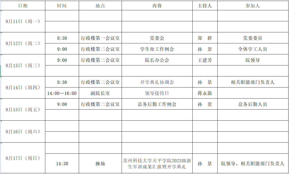 第 三 周活动安排表( 2023年 9月 11日 - 2023年 9月 17日 )