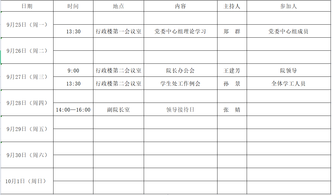 第 五 周活动安排表( 2023年 9月 25日 - 2023年 10月 1日 )
