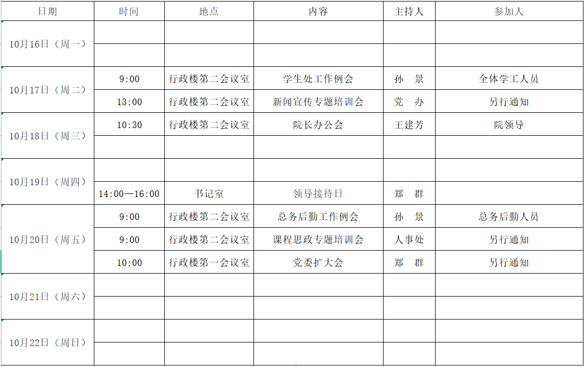 第 八 周活动安排表( 2023年 10月 16日 - 2023年 10月 22日 )