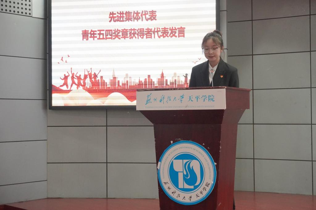 大会中,先进集体和优秀个人代表发言。“青年五四奖章”获得者韦佳贤表示,作为一名新时代青年,深知自己肩负的责任与使命,将化为榜样力量,书写青春之歌,担当起新时代下的青年使命,以实际行动发挥大学生党员的先锋模范作用。作为“五四红旗团支部”获奖集体代表,张佳懿从“思想引领、组织建设、志愿服务”等方面展示了团支部的成长之路、奋斗之旅。