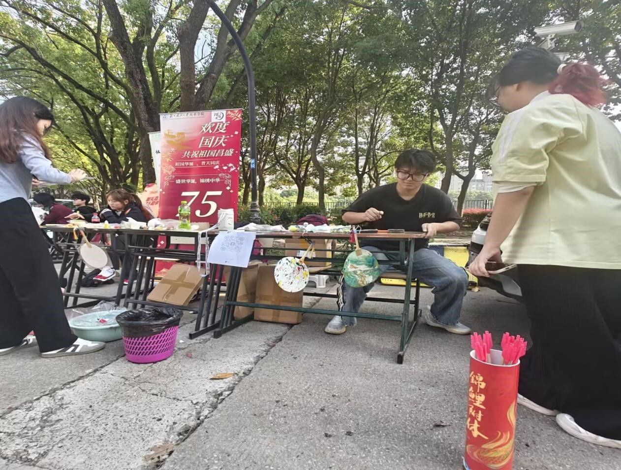 团扇 DIY 区域,则充满了创意与温馨。工作人员贴心地准备了团扇、彩带等 DIY 材料,并耐心地指导参与者进行团扇的装饰和制作。参与者们领取空白团扇和绘画工具后,纷纷沉浸在创作的无穷乐趣之中。有的选择以国庆节为主题的图案进行创作,用鲜艳的色彩精心描绘出祖国的壮丽山河和繁荣景象,仿佛将祖国的大好河山巧妙地浓缩在了一把小小的团扇之上;有的则自由发挥,凭借着自己独特的个性与创意,绘制出自己心仪的图案,让每一把团扇都变成了独一无二的艺术品。大家在这个区域里,用心感受着创作带来的快乐,一把把精美的团扇犹如一件件珍贵的艺术品,承载着对祖国的深深祝福。 此次国庆活动,绝非仅仅是一次娱乐活动,更是一次心灵的深刻洗礼。通过手绘彩蛋、投壶比赛和团扇 DIY 等丰富多彩的活动,极大地激发了大家的爱国热情。让人们在欢乐的氛围中,共同庆祝共和国的生日,深切感受着祖国的繁荣与强大。在这个特殊的日子里,人们用自己的双手和创意,为祖国献上了一份最为真挚的祝福。愿祖国在未来的日子里更加繁荣昌盛,愿我们的生活如同这场国庆活动一般,永远充满欢乐与希望。