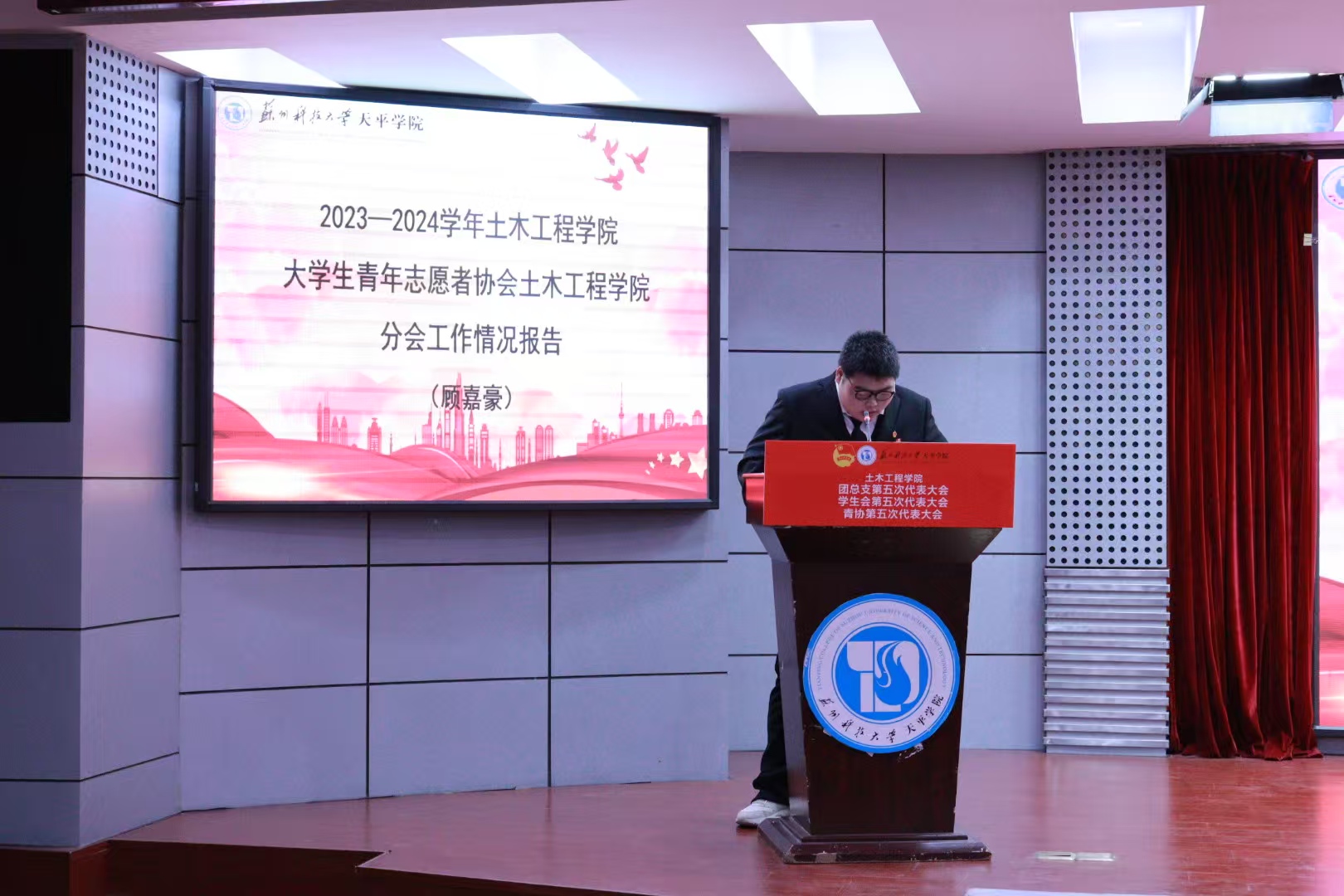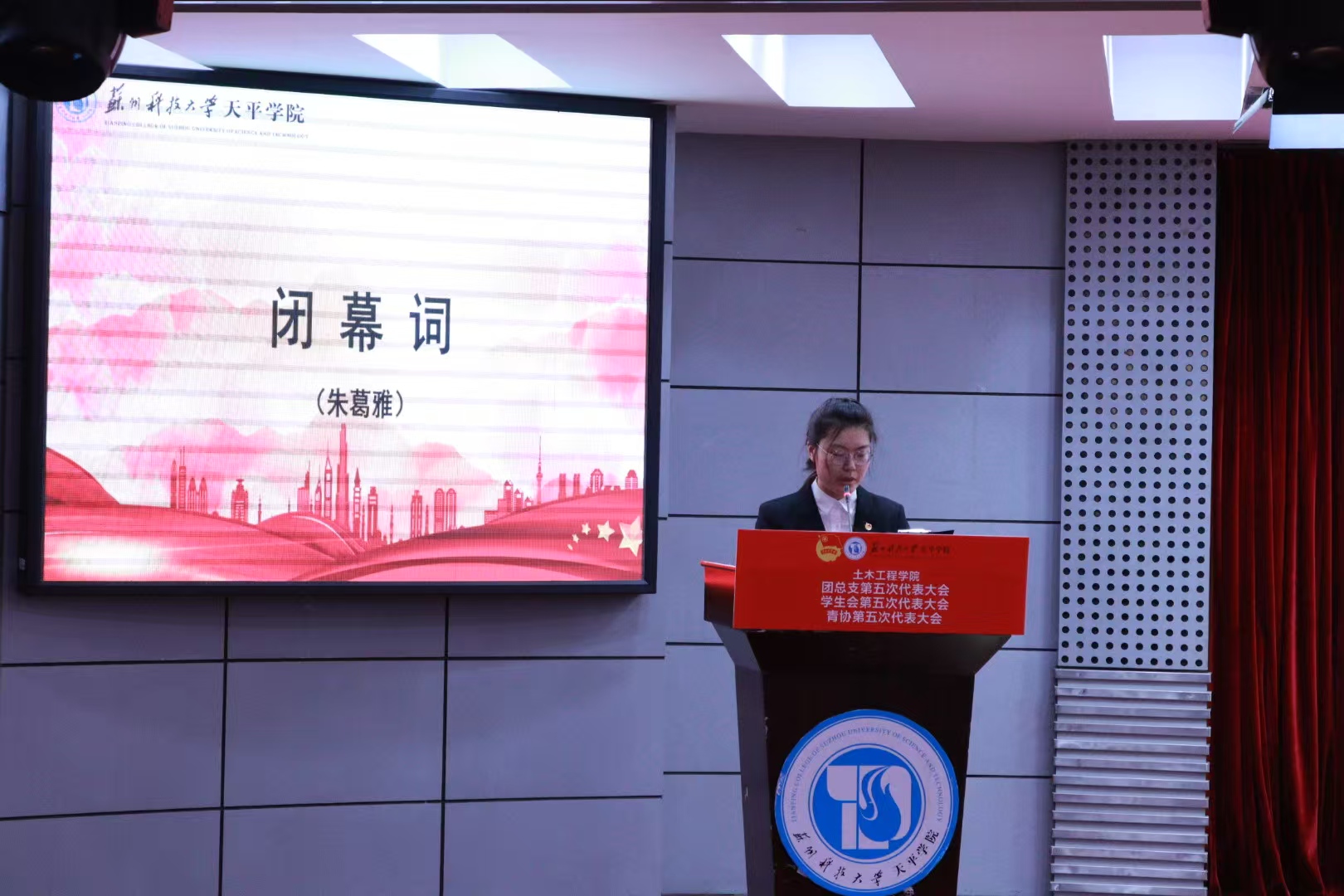 大会第四项议程,由土木工程学院学生分会主席徐小宸同学宣读大会倡议书,倡议我们担当时代责任,勇于砥砺奋斗,树立远大理想,热爱伟大祖国,以青春之姿,书不朽华章。