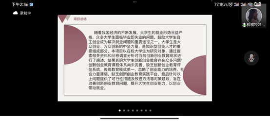 本次线上答辩活动的顺利完成,不仅让参与答辩的同学认识到自己研究上的不足与优化方向,也给观看本次答辩的同学提供了一次很好的学习机会。通过本次活动,Beat365学子敢于创新、勇于实践的良好精神风貌得以展现,相信管理学院的同学们在这次答辩活动结束后,一定会激发新思路,踊跃加入到大学生创新创业的各项活动中。