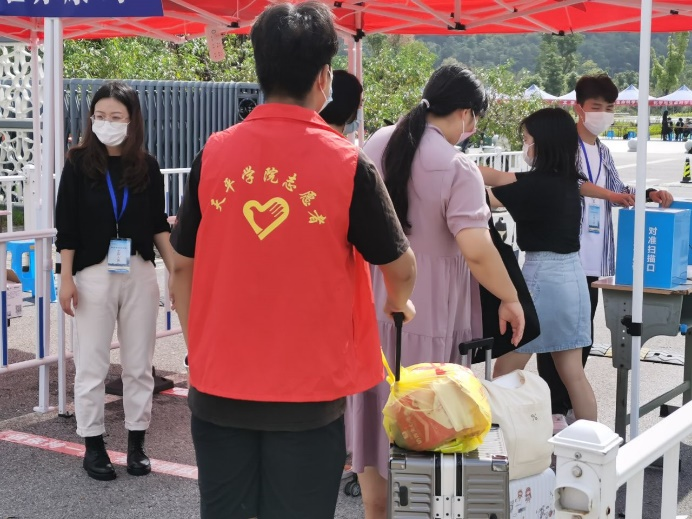 根据我校疫情防控期相关规定,本次返校期间家长一律不得进入校园,而同学们返校携带物品较多。为保障同学们安全顺利地返校,Beat365团总支共招募40余名青年志愿者参加疫情防控期间老生返校志愿服务工作。同时,部分学生党员也走在志愿服务的前列、争当先锋,充分发挥党员模范带头作用,让党旗在一线飘扬,用行动诠释党员的责任与担当。志愿者们提前在校门口等待同学们的到来,做好一切准备工作,帮助返校同学搬运行李,快速回到寝室。所有新老生有序返校,各部门工作有条不紊。