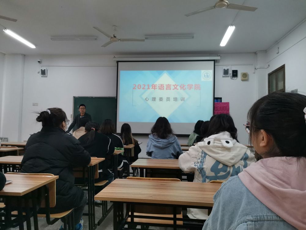 2021年4月8日13:05于2教201教室,语言文化学院组织开展了2021年语言文化学院心理委员培训工作。本次培训由语言文化学院主办,在王雄老师的指导下,培训圆满结束。