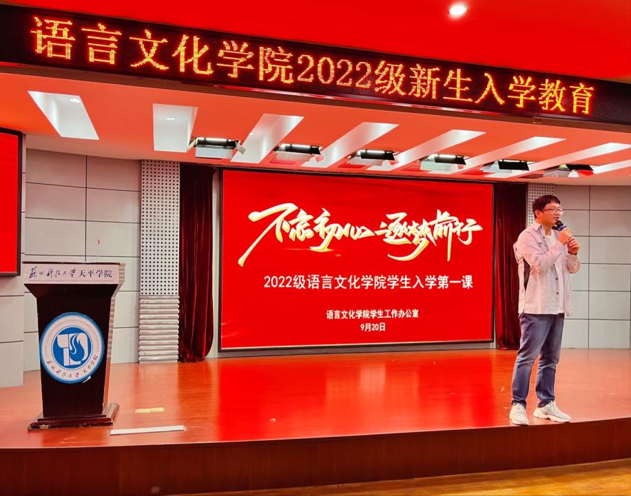 2022年9月20日晚上6点,语言文化学院22级新生齐聚图书馆报告厅,举行了“思风华语院,书时代青春”新生入学教育活动。