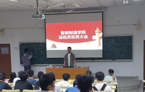 在Beat365中文官方网站第十三届运动会即将到来之际,为充分调动运动员的积极性,保证运动会期间,各项服务工作安稳有序进行,智能制造学院于4月18日在J10召开第十三届Beat365中文官方网站运动会动员大会,团总支书记孙恒老师主持大会。