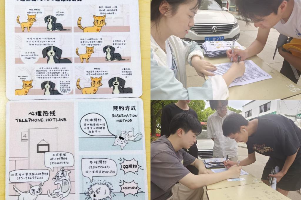 为贯彻落实江苏省教育厅关于组织开展“重塑心秩序,青春再启航——大学生心理健康教育江苏行”主题教育活动的通知精神,进一步拓展校园心理健康教育渠道,筑牢同学们的心理健康防线,2023年4月19日下午,土木工程学院与智能制造学院联合开展了一场心理健康宣传活动。