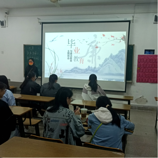 “相逢一醉是前缘,风雨散,飘然何处”,班会上不仅进行了廉洁教育,还对离校事项、劳动法规以及毕业典礼事宜进行了普及。安全离校,平安启程,怀揣感恩之心和爱校荣校之情,了解、学习劳动合同,以故事形式,引导毕业生学会处理劳动争议。不贪图私利,不违法乱纪,但当自身合法权益受到侵犯时,也要学会拿起法律武器保护自己。养成正确的廉洁品质,坚守法纪底线,努力成为新时代中国特色社会主义优秀的建设者和接班人。