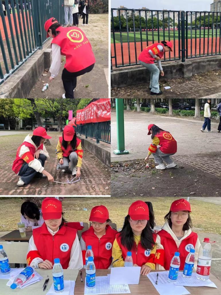 在操场上还空无一人的时候,家困生们便到操场附近集合,秩序井然的换上志愿马甲,全神贯注地投入工作。了解运动会流程;合理安排、各司其职;搭好帐篷、坚守岗位;认真负责、维持秩序,使运动员们可以全身心地投入比赛。赛后,清理场上垃圾,恢复美丽干净的校园。