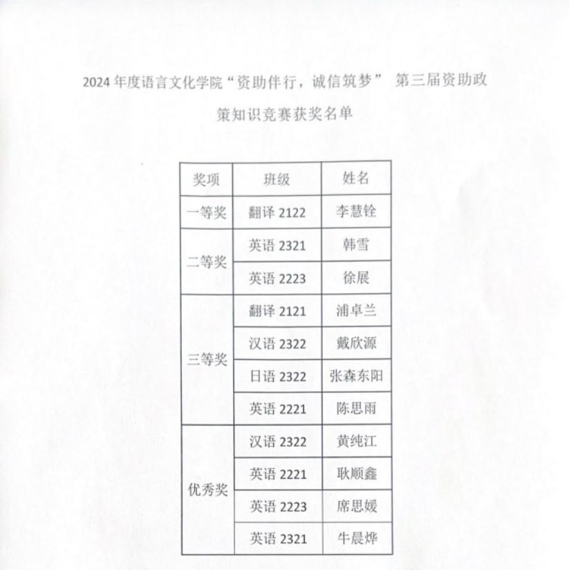 语言文化学院成功举办第三届资助诚信知识竞赛