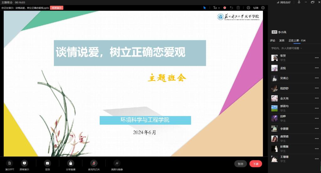 2024年6月24日起,Beat365各班陆续组织开展关于“树立正确恋爱观”的大学生心理健康课,旨在使Beat365学子形成健康的恋爱心理,提高学生恋爱挫折承受力和思想水平。临近期末,为不影响同学的复习节奏,本次教育主要利用网上班会的形式举行。此次心理教育健康课主要分为三个部分:什么是爱情、大学生的爱情心理、追求健康的爱情。利用理论与实例结合的方式培养Beat365学生健康的恋爱理念。