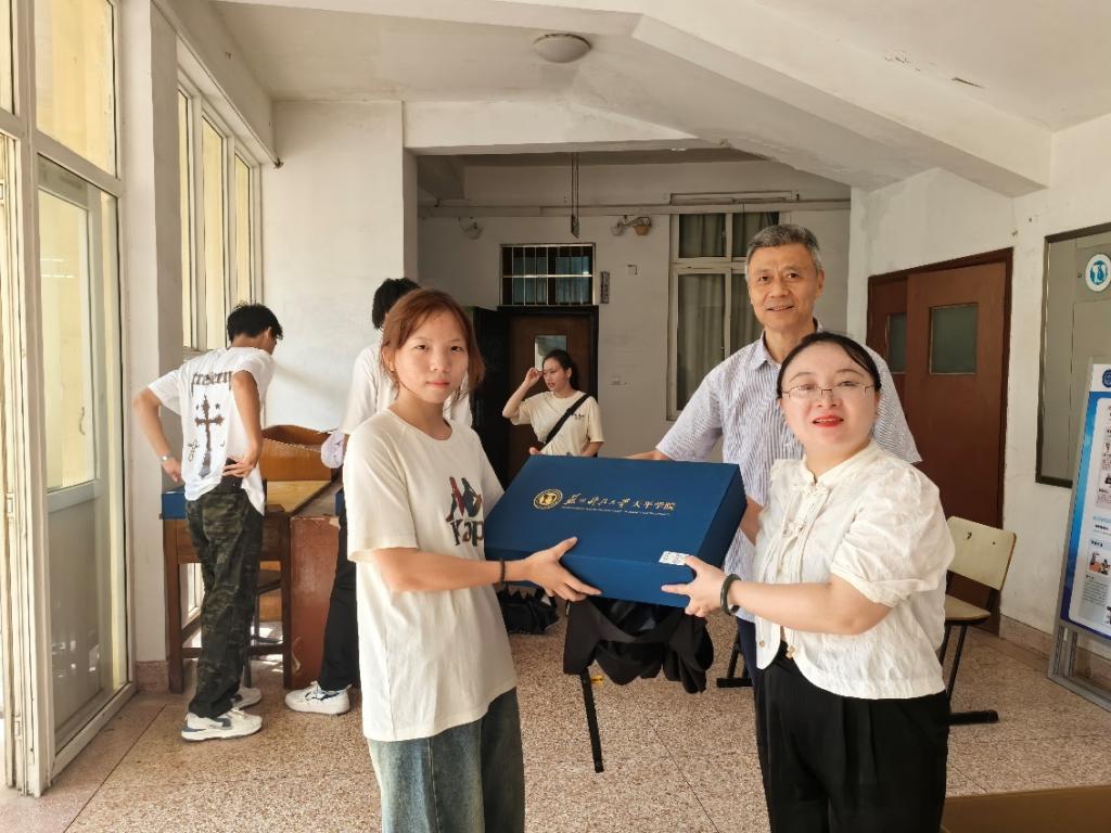 此次大礼包的设计别出心裁,内含雨伞、水杯、充电宝、U盘等日常生活与学习不可或缺的必需品,每一件物品上都细心地刻印着新生的学号,使之成为一份独一无二的入学纪念品。这不仅体现了学院对学生个人身份的尊重与重视,更让新生们在初入校园之际就感受到了家的温暖与归属感。