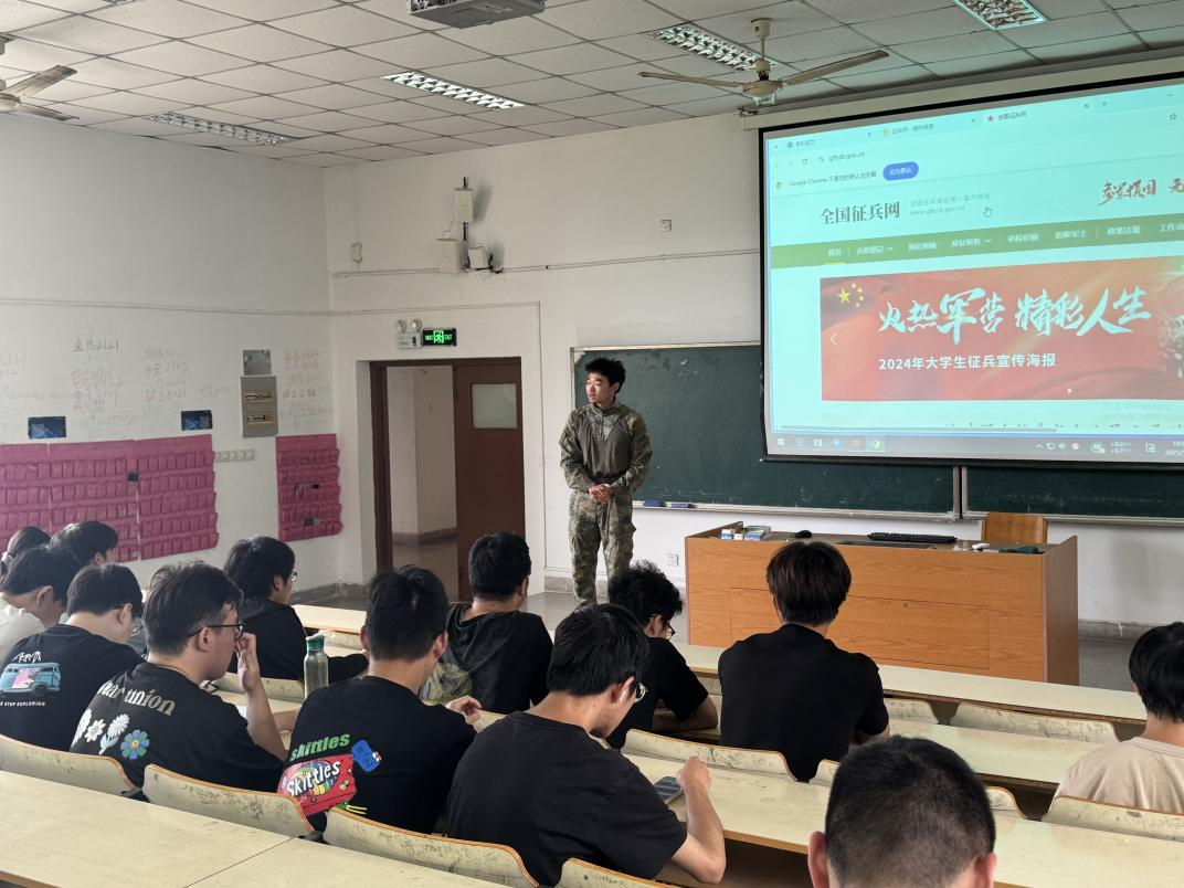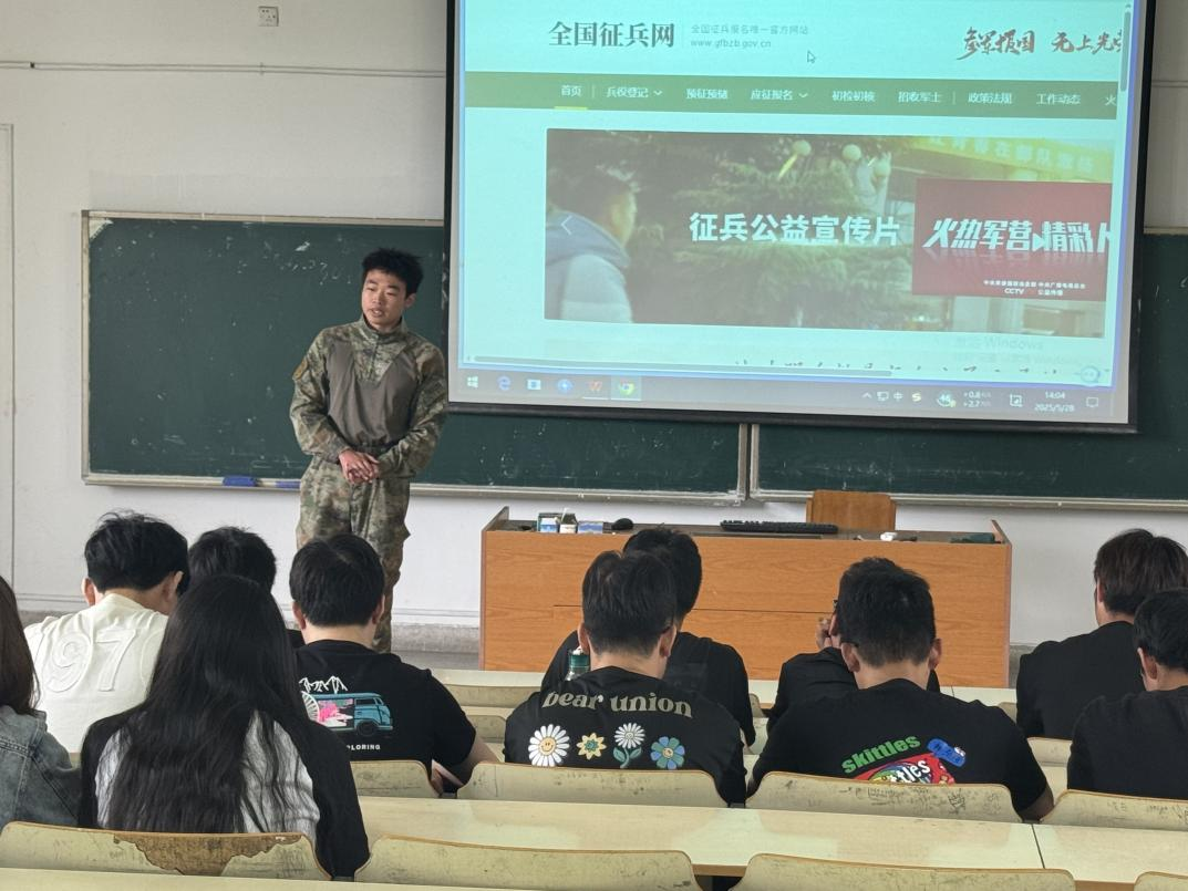 为激发青年学子投身国防事业的热情,环境科学与工程学院于2025年5月28日在J11教室开展征兵宣讲会。三位优秀退伍学长化身宣讲员,结合自身经历解读征兵政策、普及国防知识,为现场同学带来一堂生动的国防教育课。